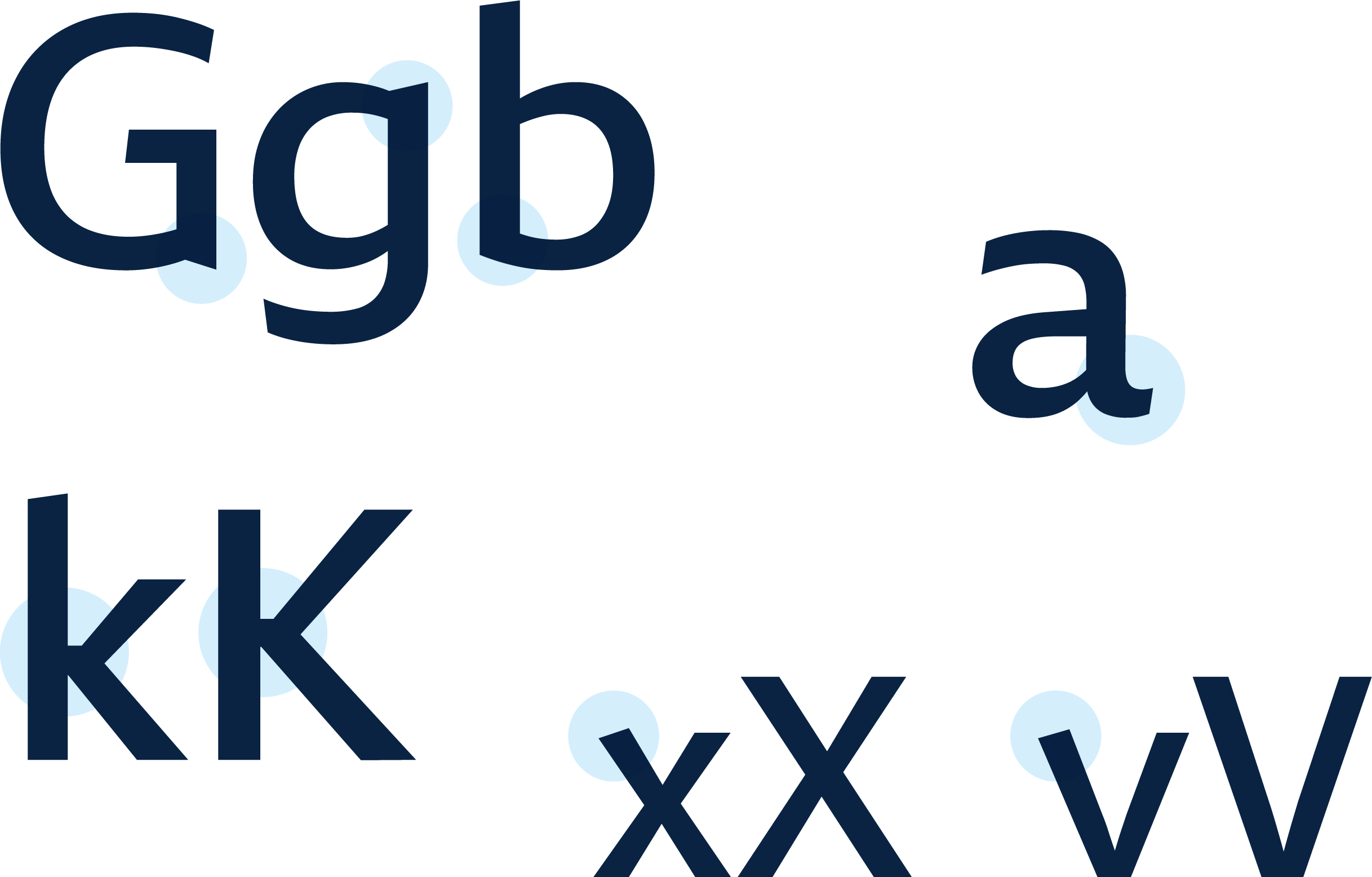 Men de ulike vinklene på strøkendene i «v» og «x» er kanskje de mest unike. I «K» og «k» kan man se hvordan de to diagonale strøkene møtes, men at det kun er det nederste, foten, som møter den vertikale stammen.