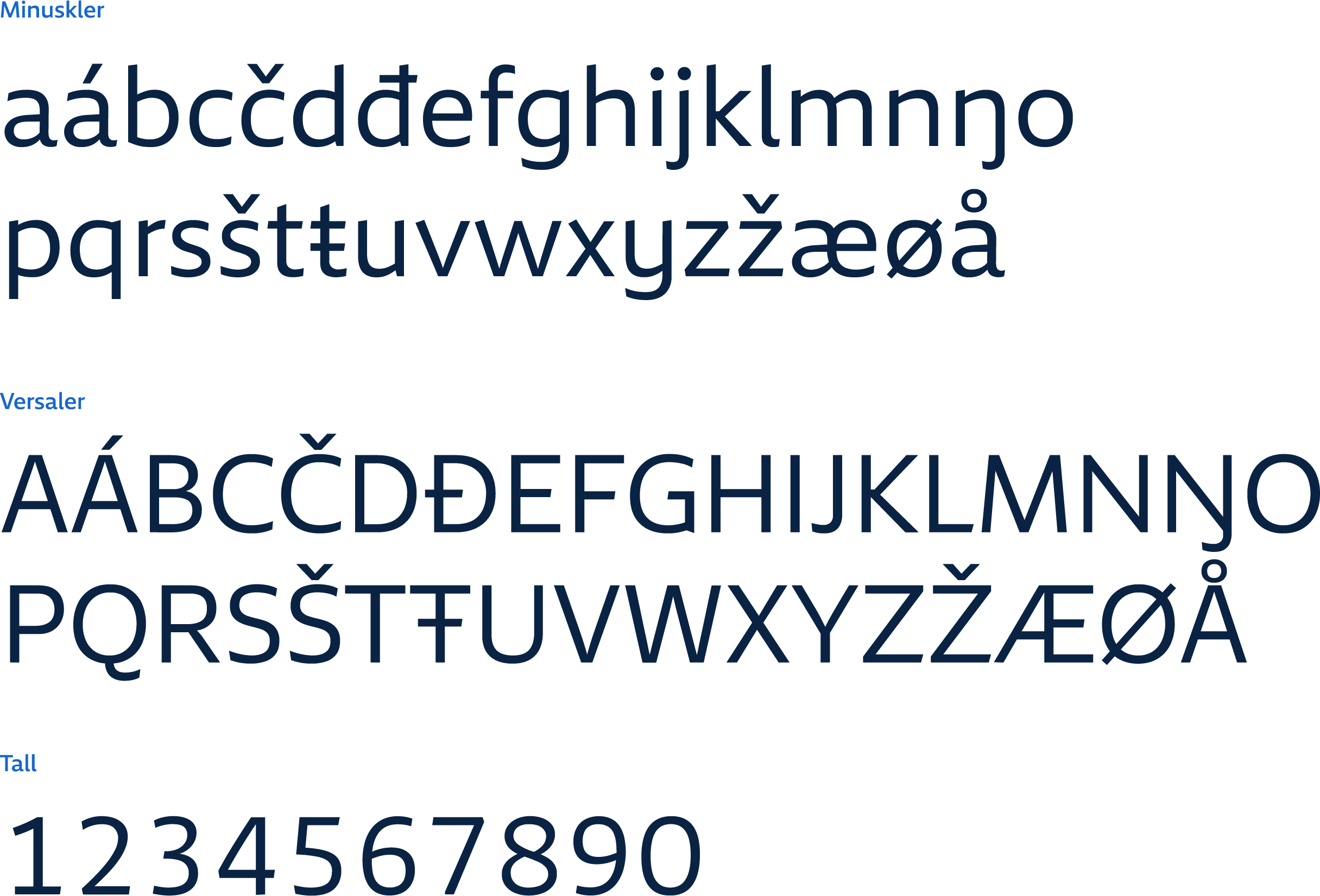 Tegnsettet støtter det utvidete latinske alfabetet, og alle de samiske variantene som brukes i Norge.