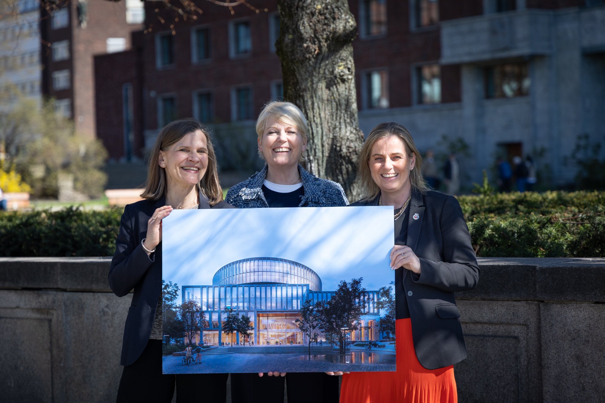 Fra venstre: Direktør i Plan- og bygningsetaten, Vera Houck, kringkastingssjef Vibeke Fürst Haugen og byråd for byutvikling, Anita Leirvik North. Foto: Ida Rydeng